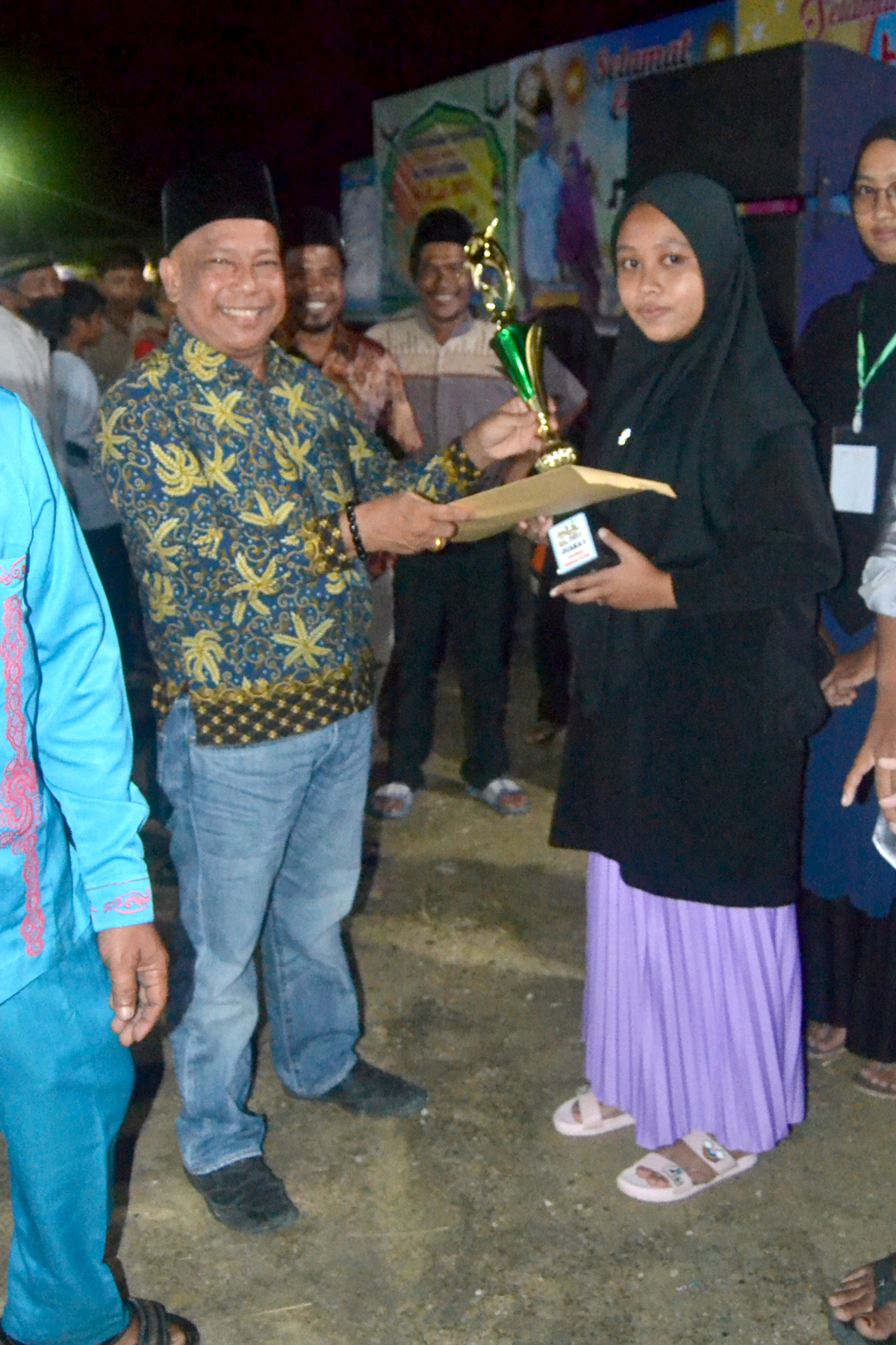 Kepala Desa Palas H. Samsari AS bersama undangan yang hadir juga berkesempatan membagi Piala lomba yang dimulai dari Lomba Tilawah Putra Putri, Tartil Putra Putri, serta Adzan dari Harapan 2 sampai dengan juara 1.