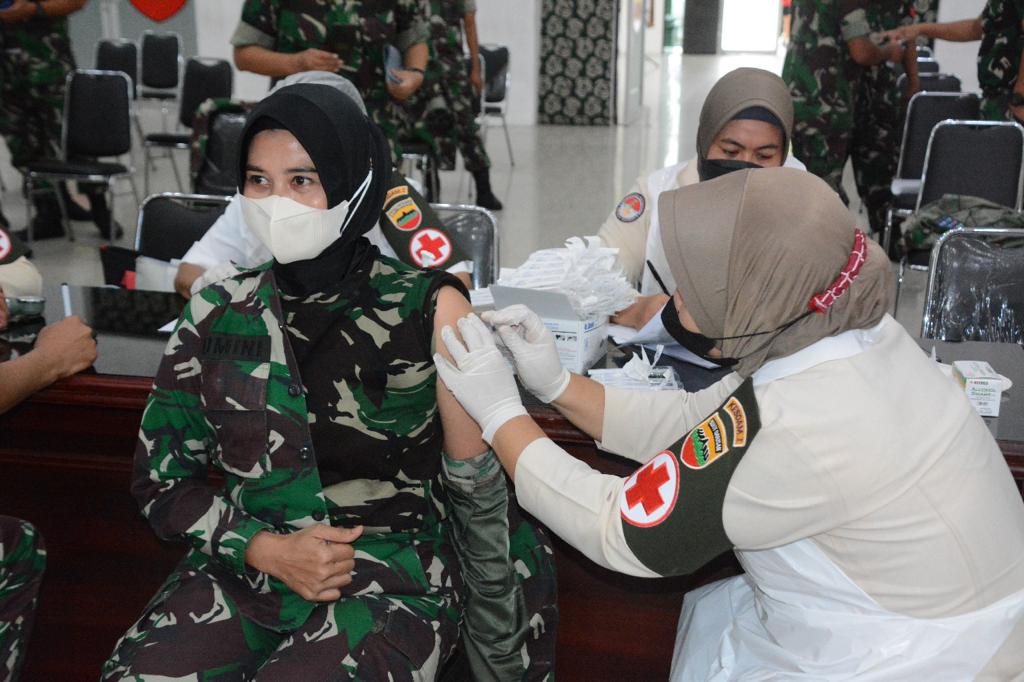 Prajurit Makodam I/BB penerima vaksinasi ketiga (Booster) jenis Pfizer adalah mereka yang telah mendapat vaksinasi dosis lengkap (satu dan dua).