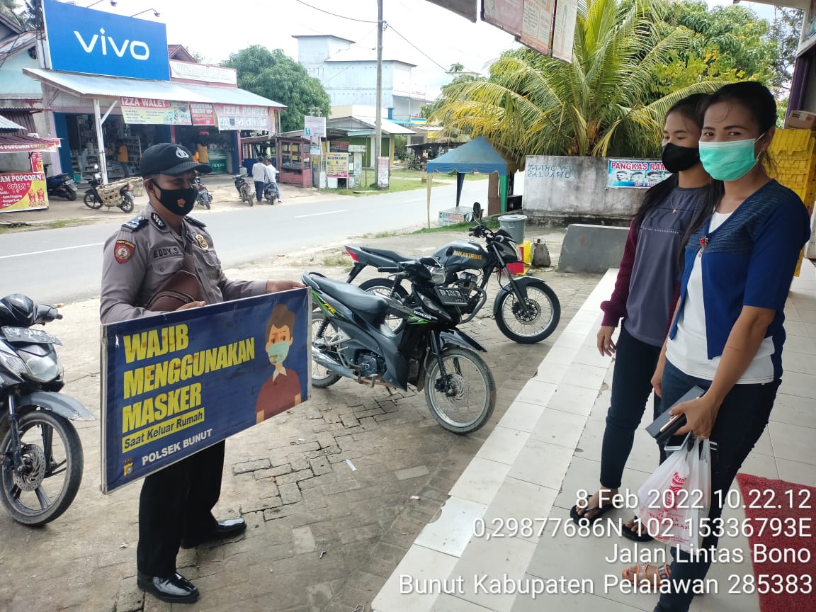 Khabarterkini.id |Pelalawan – Dalam rangka pendisiplinan terhadap masyarakat dalam masa adaptasi kebiasaan baru, Polsek Bunut Polres Pelalawan kembali melakukan operasi Yustisi, di wilayah hukumnya, Selasa (8/2/2022).
