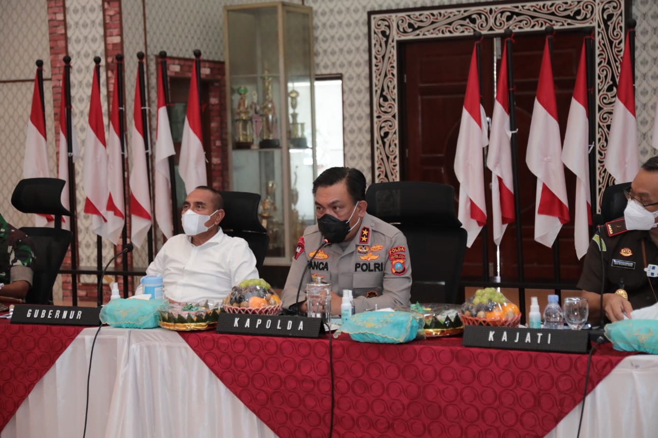 Hal tersebut disampaikan Kapolda Sumut saat Rapat Koordinasi Lintas Sektoral bersama Forkopimda terkait penanganan Covid-19, Senin (14/2) yang digelar di Aula Tribrata Mapolda Sumut