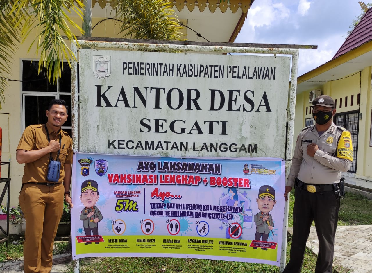 Pelalawan, khabarterkini.id – Polsek Langgam Polres Pelalawan, kembali melanjutkan pemasangan Spanduk Himbauan Vaksinasi lengkap & Booster, diwilayah hukumnya, Senin (14/2/2022).