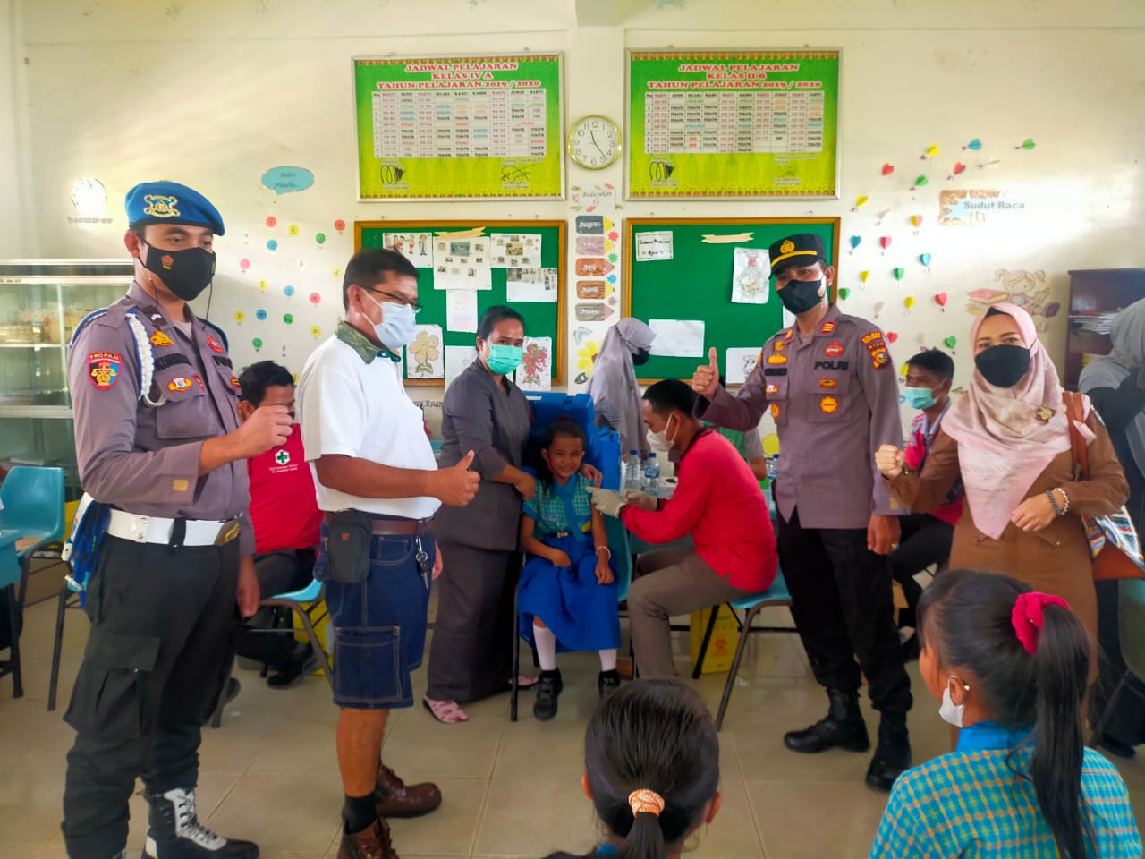 Pengawalan Vaksin Usia 6-11 Th Oleh Polsek pangkalan Lesung