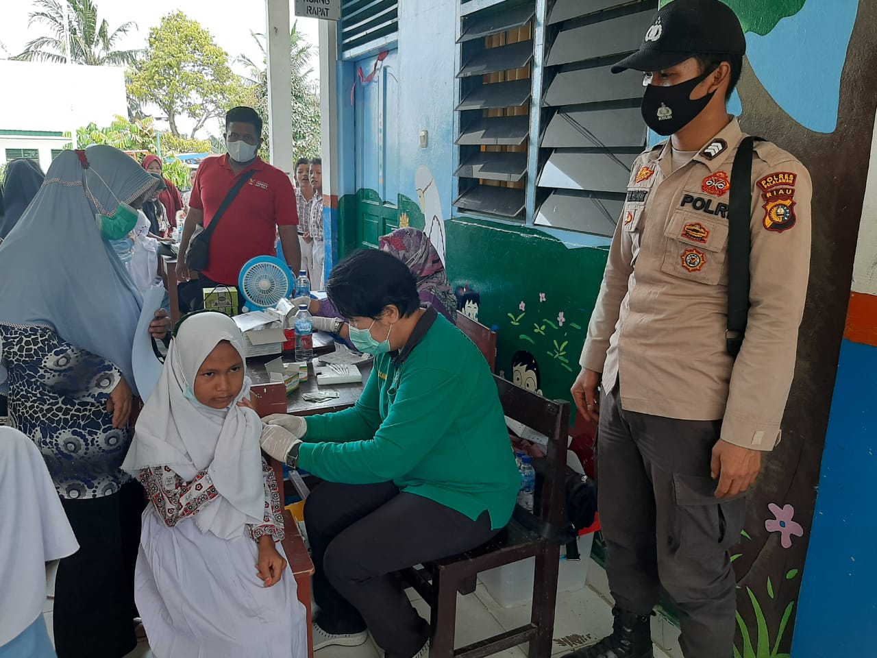 khabarterkini.id | Pelalawan – Berbagai upaya dilaksanakan polsek ukui dan puskesmas ukui dalam rangka mendukung kebijakan pemerintah terkait percepatan vaksinasi di kecamatan ukui salah satunya adalah menggelar vaksinasi keliling setiap hari, baik itu disekolah-sekolah maupun ke desa-desa.