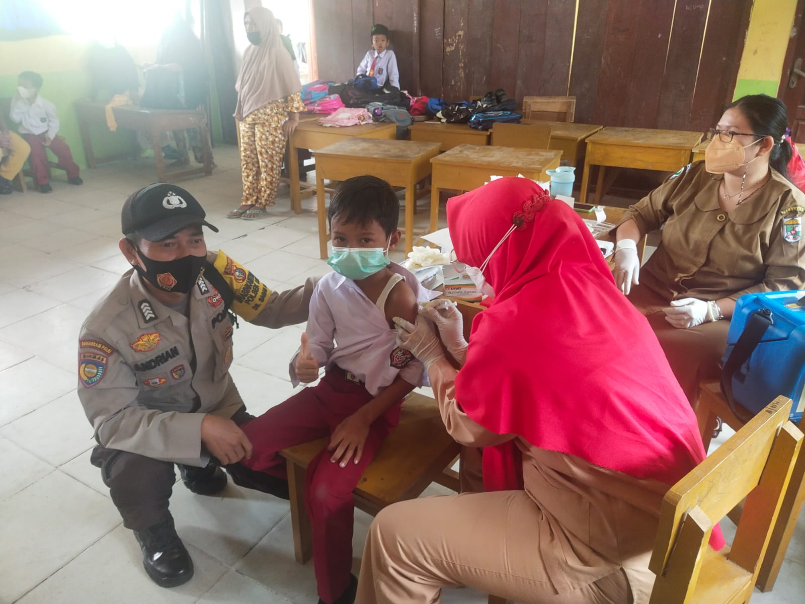 Sampai dengan siang ini vaksinasi di 3 SD masih berlangsung informasi terakhir jumlah yang berhasil di vaksin mencapai 150 orang.