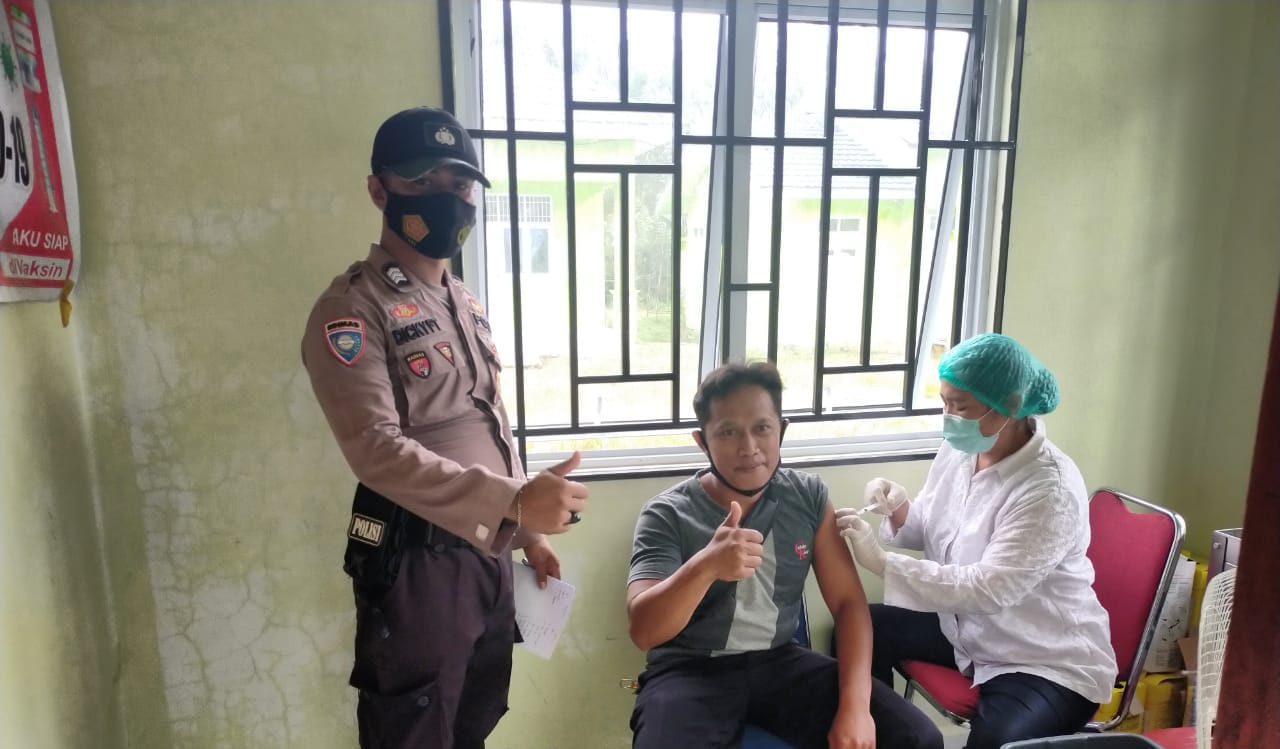 Pelalawan | khabarerkini.id – Personel Bhabinkamtibmas Polsek Kerumutan, Polres Pelalawan, terus mengawal kegiatan Vaksinasi Covid-19, Kegiatan Vaksinasi hari ini sendiri dilaksanakan di Puskesmas, Kecamatan Kerumutan, Kabupaten Pelalawan, Rabu (17/02/2022) Pagi.