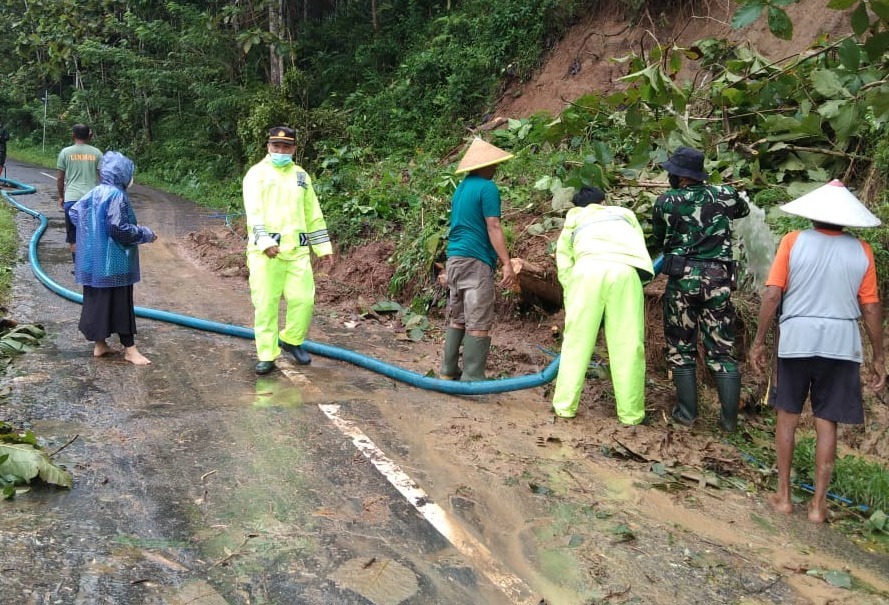 Aparat Berjibaku Atasi Material Longsor Di Pekuncen