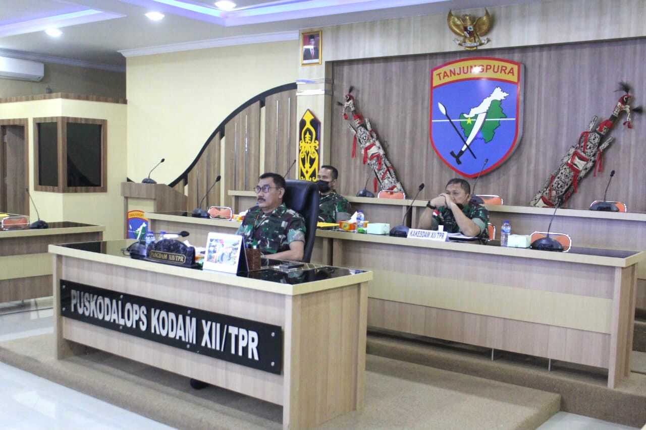 Kubu Raya | khabarterkini.id“Kamis (17/3/22) – Panglima Kodam XII/Tanjungpura, Mayjen TNI Sulaiman Agusto, S.I.P., M.M., didampingi Asops Kasdam XII/Tpr dan Kakesdam XII/Tpr mengikuti rapat secara virtual membahas kemajuan pelaksanaan vaksinasi bertempat di Ruang Rapat Puskodalopsdam XII/Tpr.