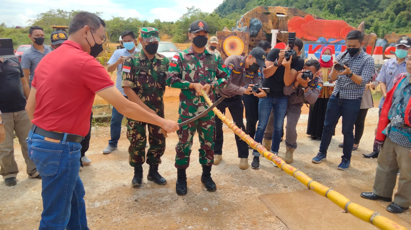 Kegiatan ini diakhiri dengan penanda tanganan gerbang Garuda wisata Lembah Bukit Semugang serta foto bersama ibu-ibu Persit KCK Daerah XII/Tpr. Tetap mengedepankan protokol kesehatan. (Pen Yonif 144/JY).