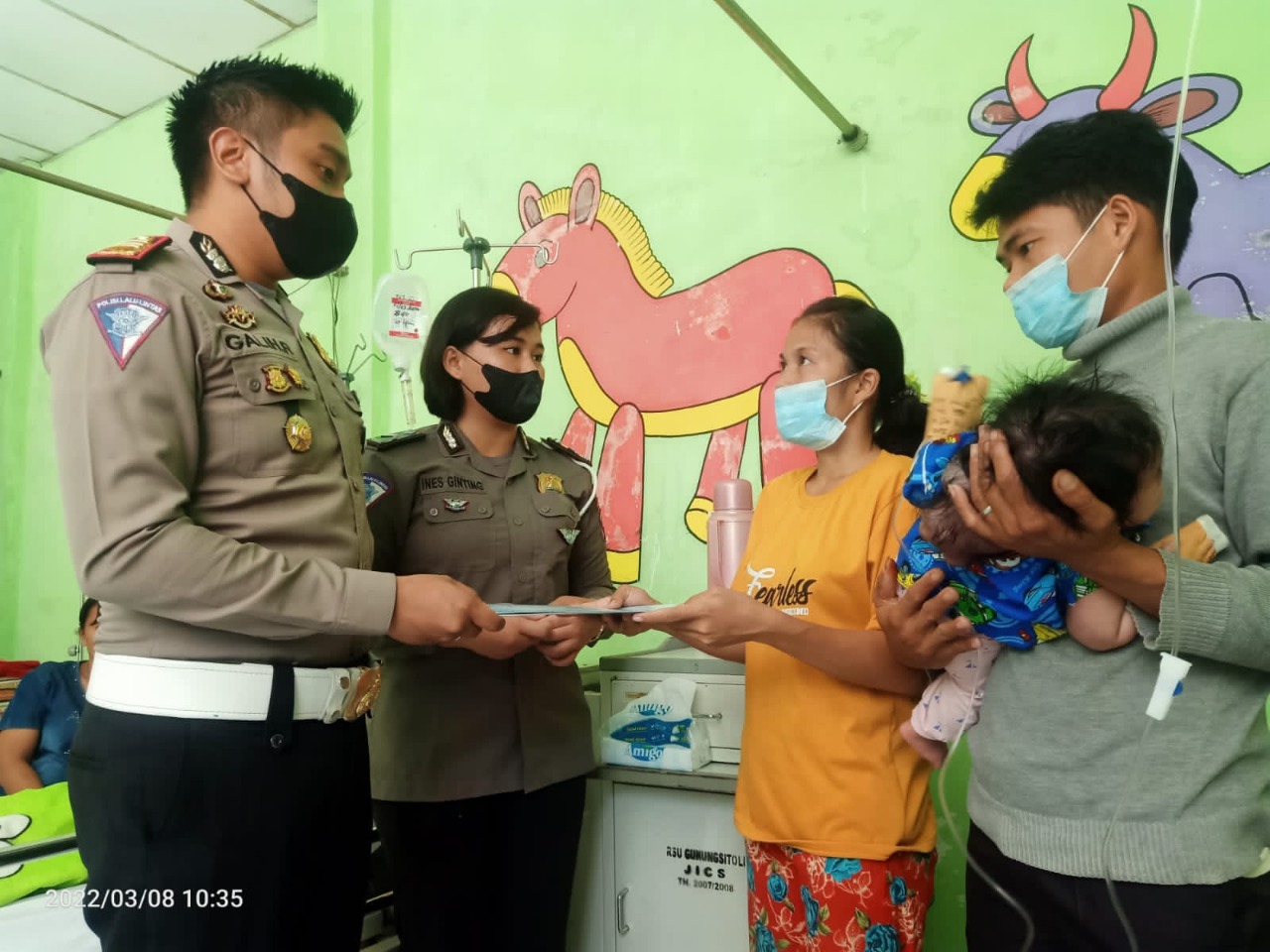 Kota Gunungsitoli|KhabarTerkini.id -Selasa, 08/03/2022. Kapolres Nias AKBP Wawan Iriawan menyerahkan santunan kepada Orang tua anak Penderita Tumor atas nama Bianca Halawa Umur 3 Bulan yang sekarang ini sedang menjalani pengobatan di RSUD dr Thomsen Gunungsitoli, Selasa (08/03/2022.