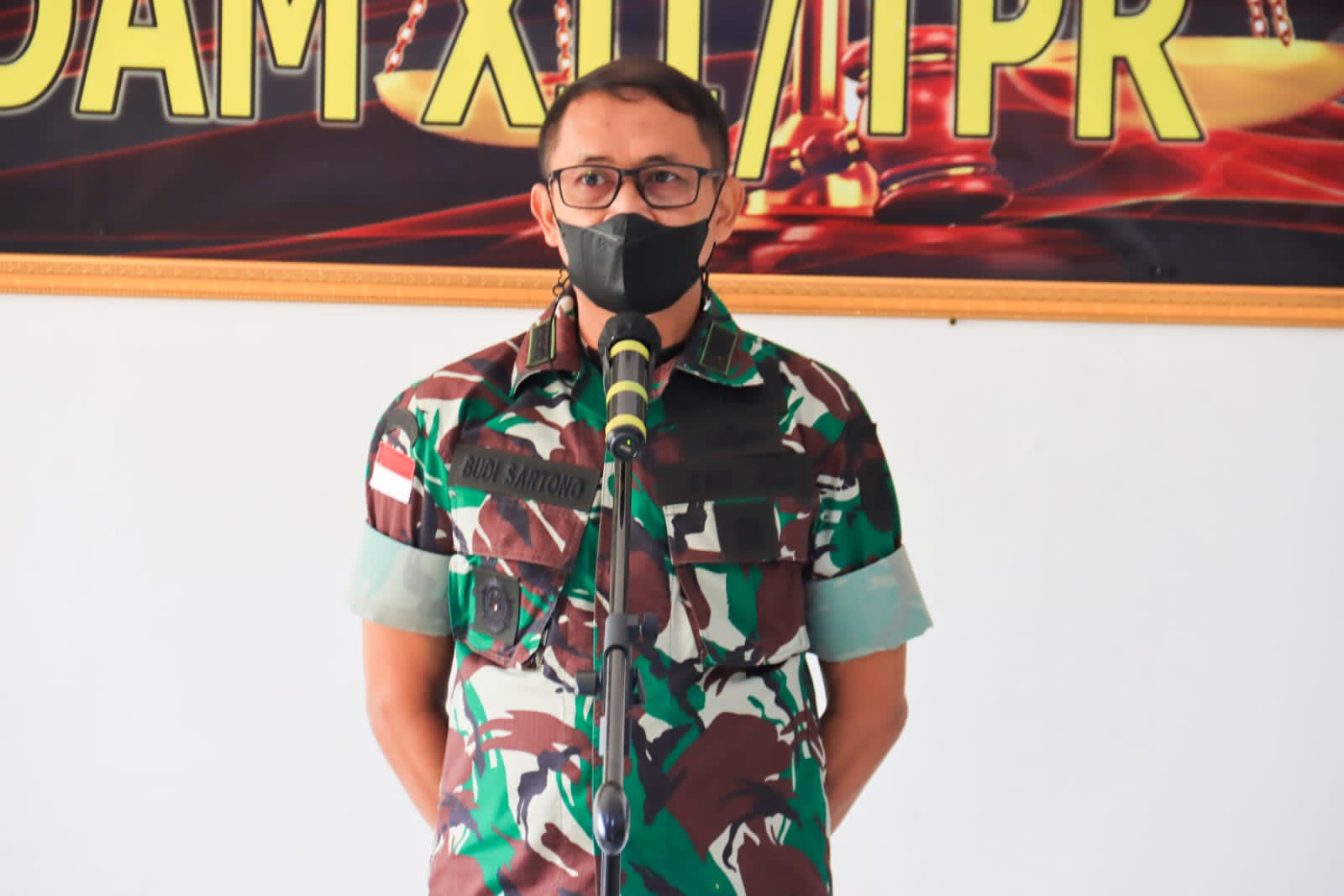 Kakumdam XII/Tpr, Kolonel Chk Budi Sartono dalam sambutannya mengucapkan selamat ulang tahun ke -70 kepada seluruh personel Korps Hukum TNI-AD yang berada di seluruh Indonesia dari Sabang sampai Merauke.