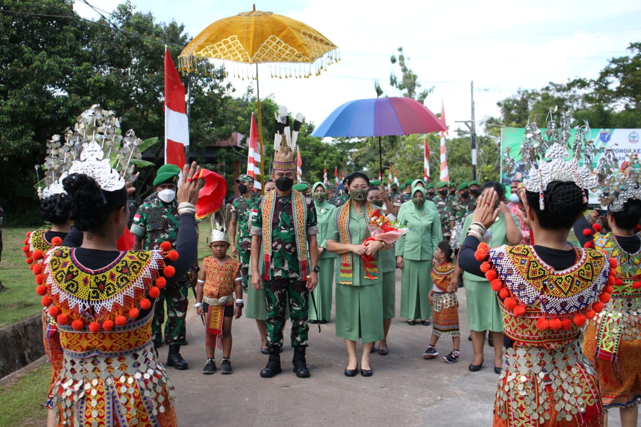 Tiba di Makodim, Pangdam XII/Tpr serta rombongan diterima Dandim 1206/Psb, Letkol Inf Jemi Oktis Oil, S.I.P., bersama Ketua Persit KCK Cabang L Kodim 1206/Psb, Ny. Denik Jemi Oktis Oil serta seluruh personel Kodim 1206/Psb.