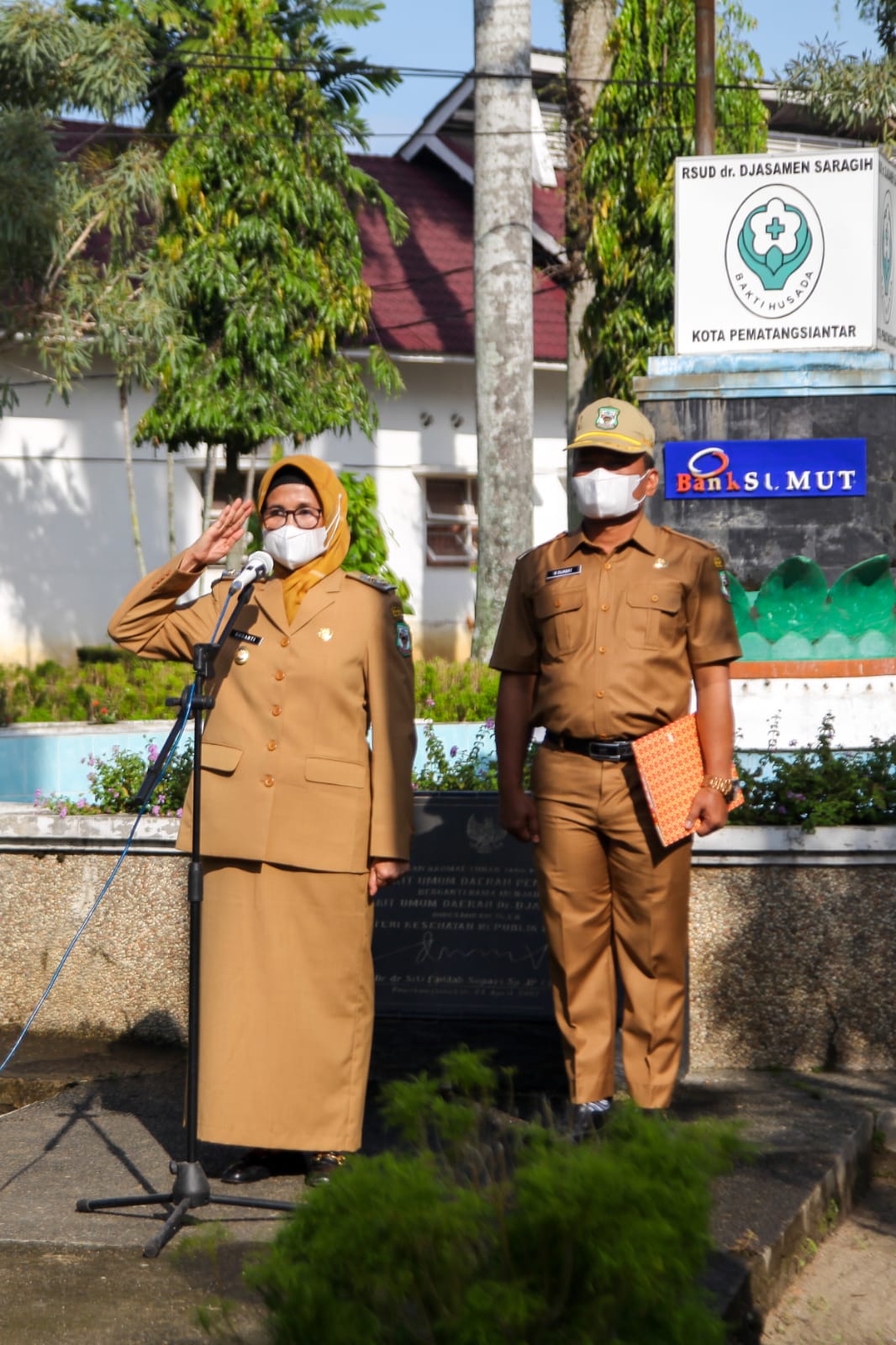 Plt.Walikota Pematangsiantar Pimpin Apel di Lingkungan Rumah Sakit Umum Daerah (RSUD) Djasamen Saragih.