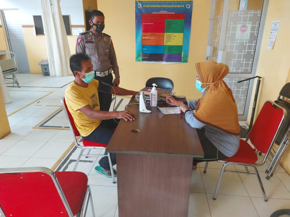 Sebagai Vaksinator tenaga kesehatan (Nakes) dari Puskesmas Pangkalan Kuras I dan II, melibatkan personil dari anggota Polsek Pangkalan Kuras sebanyak 10 orang dan 16 tenaga kesehatan dari Puskesmas.