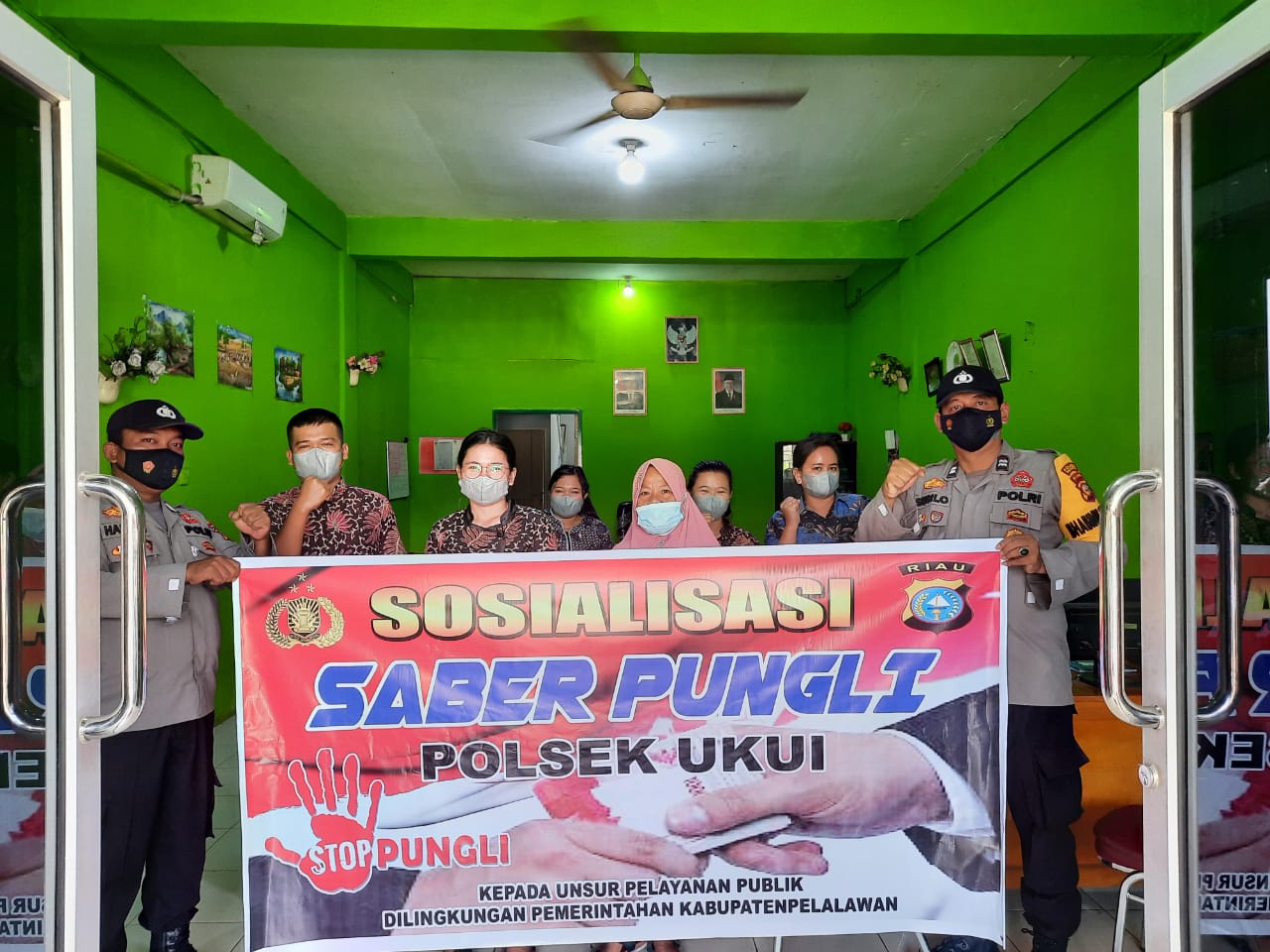 “Masyarakat kecamatan ukui dapat menyampaikan informasi, mengadukan atau melaporkan tindak pidana pungutan liar dengan menghubungi Satgas Saber Pungli,” kata kapolsek