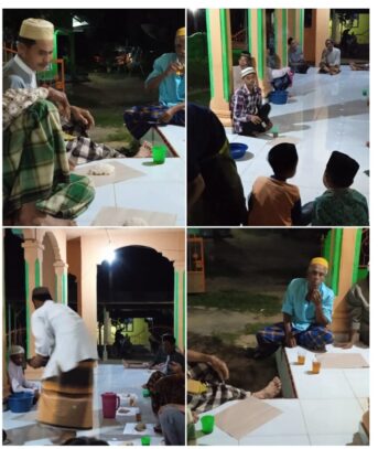 Akhir kegiatan khataman Al -Qur’an di tutup dengan doa bersama sama serta menyantap hidangan yang sudah biasa di buat oleh masyarakat setempat yaitu berupa nasi pulut dengan potongan ayam goreng, kripik dan lainnya, yang di infaqkan oleh saudara salim teratak ( sapaan akrab) dengan berharap untuk mendapatkan Hidayah dan pengampunan dari Allah SWT serta Rasulnya.