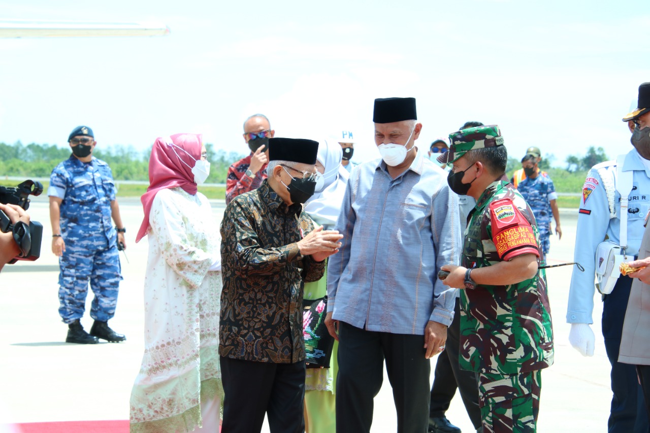 Wapres dan rombongan setelah leanding langsung di sambut Pangdam I/BB beserta Pejabat Forkopimda Provinsi Sumbar.