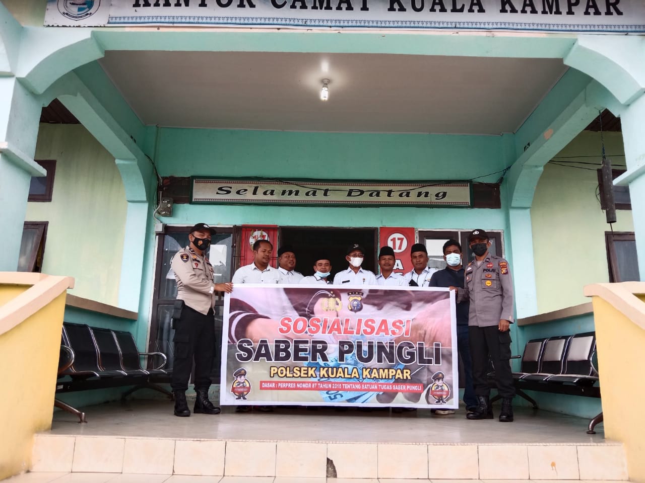 Kegiatan Sosialisasi ini melibatkan sebanyak 3 personil Polsek Kuala Kampar. Dilakukan di Kantor Camat Kuala Kampar Kabupaten Pelalawan.