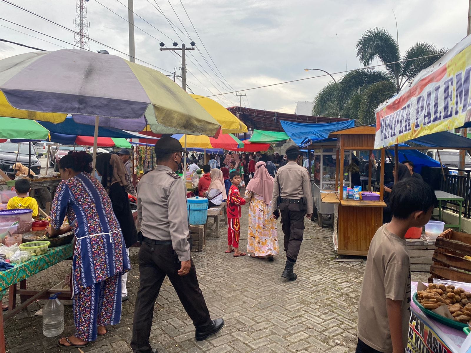 Pelalawan|khabarterkini.id-Menjelang waktu berbuka puasa Ramadhan 1443 H/2022 M, Petugas Kepolisian Pangkalan Kuras, Polres Pelalawan terus melaksanakan pengamanan Pasar Ramadhan.