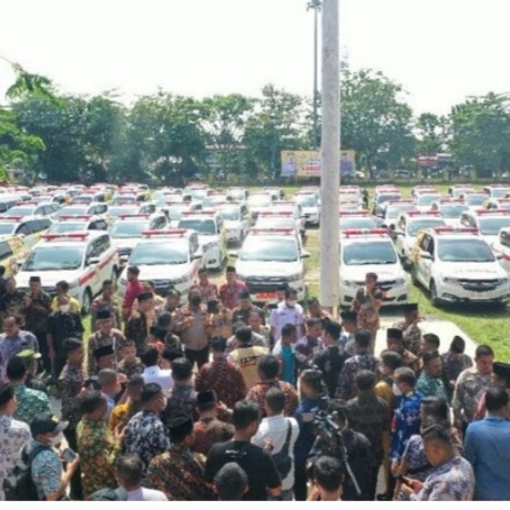 sebanyak 242 unit ambulance dikumpulkan di lapangan pelajar dengan di hadiri seluruh kepala desanya.