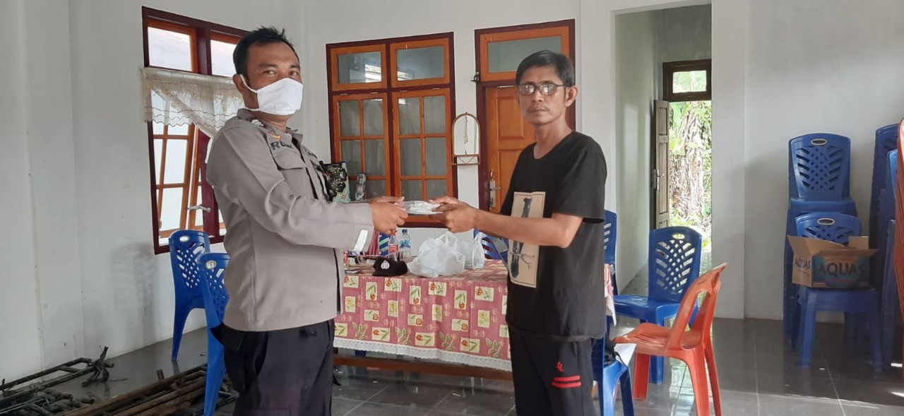 Antisipasi Penyebaran Virus Covid-19, Bhabinkamtibmas Personil Polsek Tegakkan Disiplin Prokes Dengan Membagikan Masker Gratis