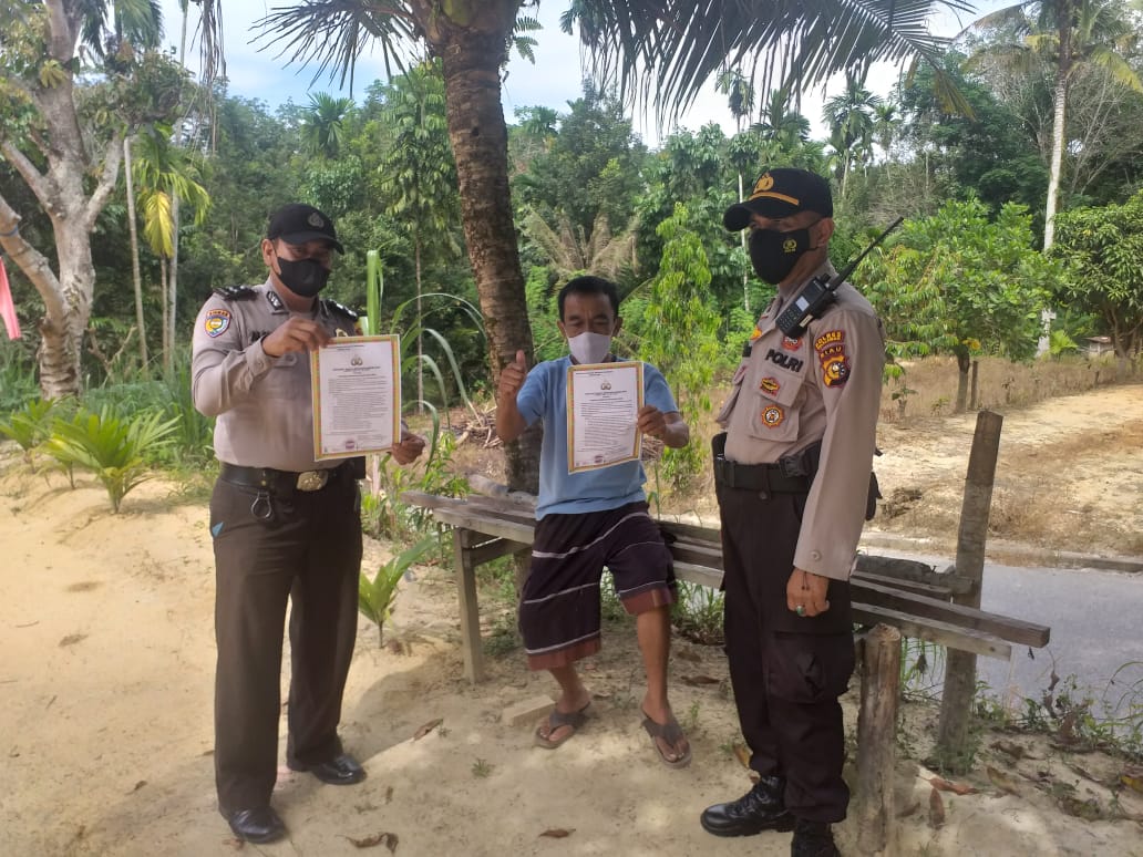Pelalawan|khabarterkini.id-Polsek Pangkalan Kuras jajaran Polres Pelalawan lakukan kegiatan penyebaran dan sosialisasi Maklumat Kapolda tentang larangan membuka hutan dan lahan dengan cara membakar, Sabtu (21/4/2022) kemarin.