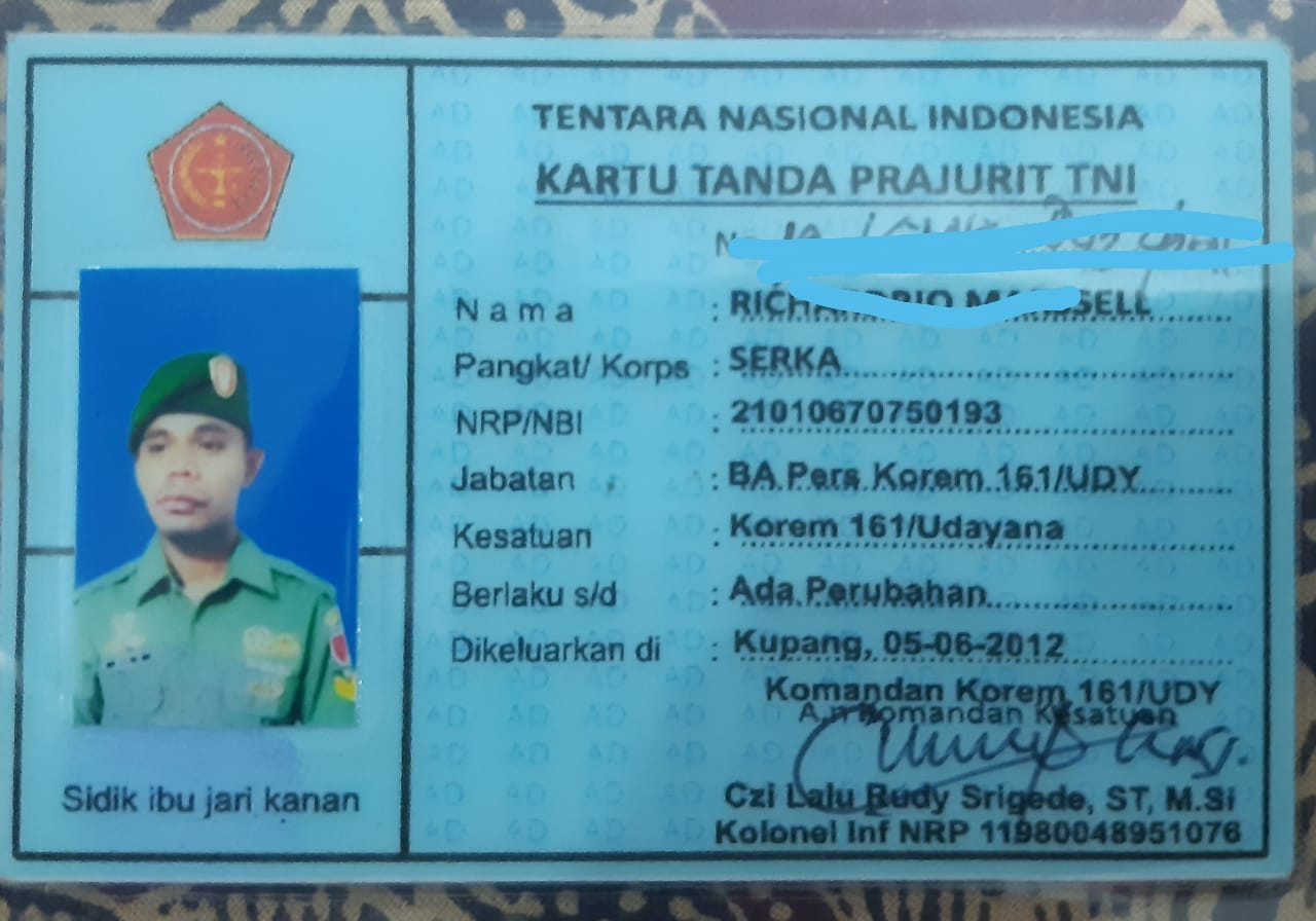 Dari hasil pemeriksaan terhadap Identitas Pelaku juga menunjukan KTP dan kartu anggota (KTA) TNI yang diduga palsu untuk meyakinkan perihal profesinya.