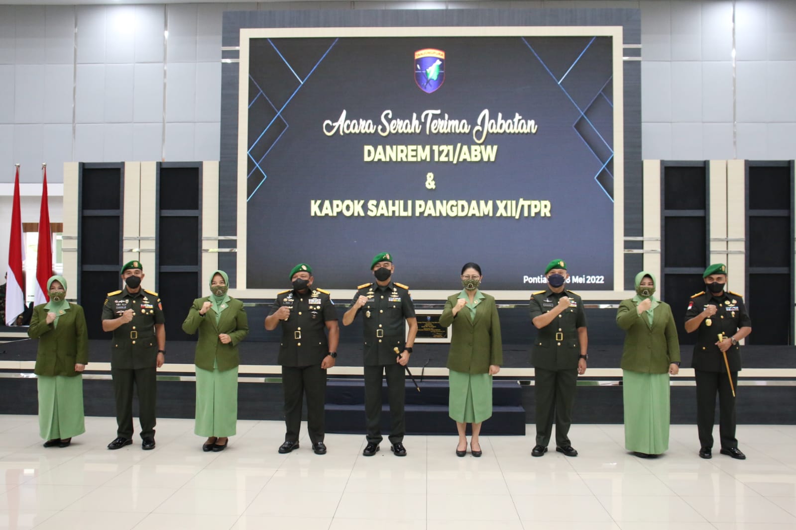 Kubu Raya | Khabarterkini.id“Rabu (18/5/22) – Untuk meningkatkan kualitas kinerja dan produktivitas satuan serta pengembangan karir para perwira, Panglima Kodam XII/Tanjungpura, Mayjen TNI Sulaiman Agusto, S.I.P., M.M., memimpin serah terima jabatan Danrem 121/Alambhana Wanawwai dan Kapok Sahli Pangdam XII/Tpr bertempat di Aula Sudirman, Makodam XII/Tpr.