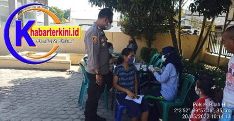 Labuhanbatu I Khabarterkini.id-Polsek Bilah Hulu yang bekerjasama dengan Tim medis dari Puskesmas Desa Perbaungan Kecamatan Bilah Hulu melaksanakan penyuntikan vaksin Covid-19 bagi masyarakat yang belum melakukan penyuntikan yang di laksanakan di Halaman Mapolsek Bilah Hulu Aek Nabara, Kecamatan Bilah Hulu, Kabupaten Labuhanbatu, Sumatera Utara, Jumat (20/5/2022).