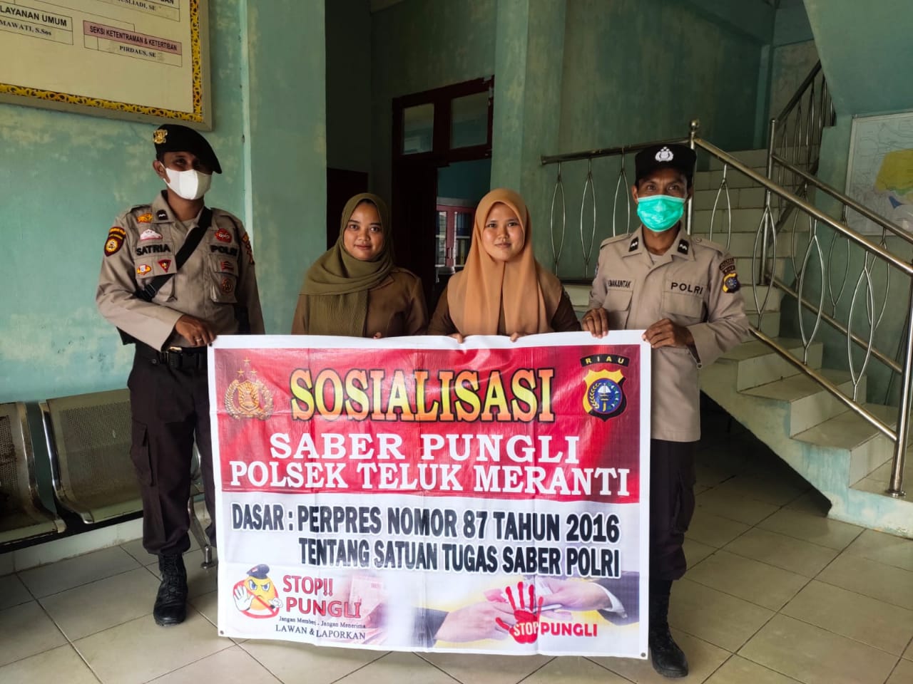 Polsek Teluk Meranti jajaran Polres Pelalawan hingga hari ini, masih gencar melakukan sosialisasi Saber Pungli di Kelurahan Teluk Meranti, Kabupaten Pelalawan, Jumat (20/5/2022). Kali ini dilaksanakan oleh 3 orang petugas.