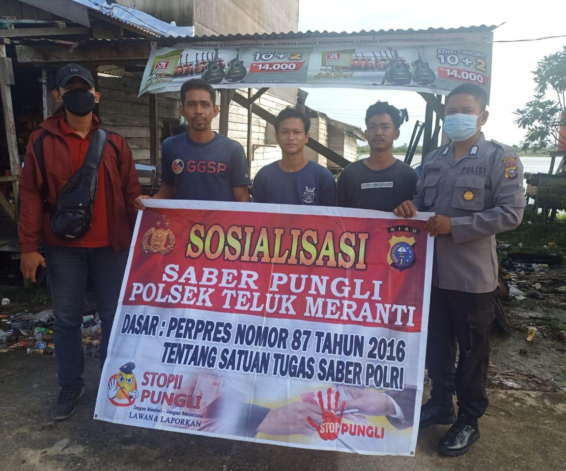 Pelalawan|khabarterkini.id-Polsek Teluk Meranti jajaran Polres Pelalawan melakukan sosialisasi Saber Pungli di Pasar tradisional Kelurahan Teluk Meranti, Kabupaten Pelalawan, Selasa (24/5/2022)