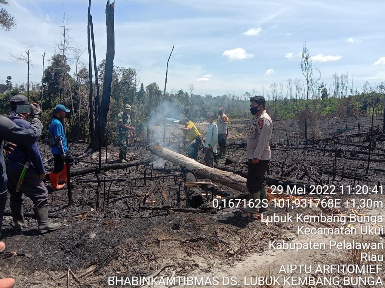 Pelalawan|khabarterkini.id- Tanggap Kebakaran Hutan dan Lahan (Karhutla), Polsek Ukui verifikasi sekaligus padamkan titik api di Dusun Toro Jaya, Desa Lubuk Kembang Bunga, Minggu (29/5/2022).