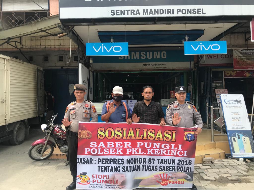 Pelalawan|khabarterkini.id-Untuk mengantisipasi pungutan liar, Polsek Pangkalan Kerinci jajaran Polres Pelalawan melaksanakan kegiatan sosialisasi Saber Pungli, Sabtu (18/6/2022).