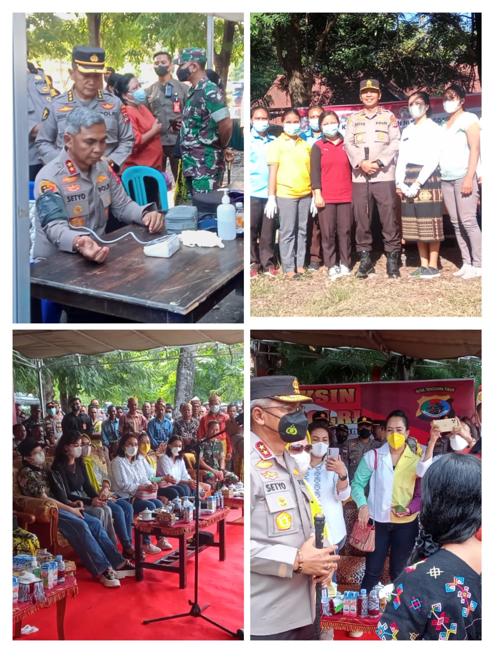 Kunjungan kerja Kepala Kepolisian Daerah Nusa Tenggara Timur Bapak Drs Setyo Budiyanto SH, MH ke wilayah Kecamatan Amanuban Selatan Kabupaten Timor Tengah Selatan Provinsi Nusa Tenggara Timur dengan agenda kerja bakti kesehatan, bansos, Vaksinasi,dan Vidio Callpren dengan Kapolri dalam rangka memperingati HUT Bhayangkara ke-76, Juni 2022.