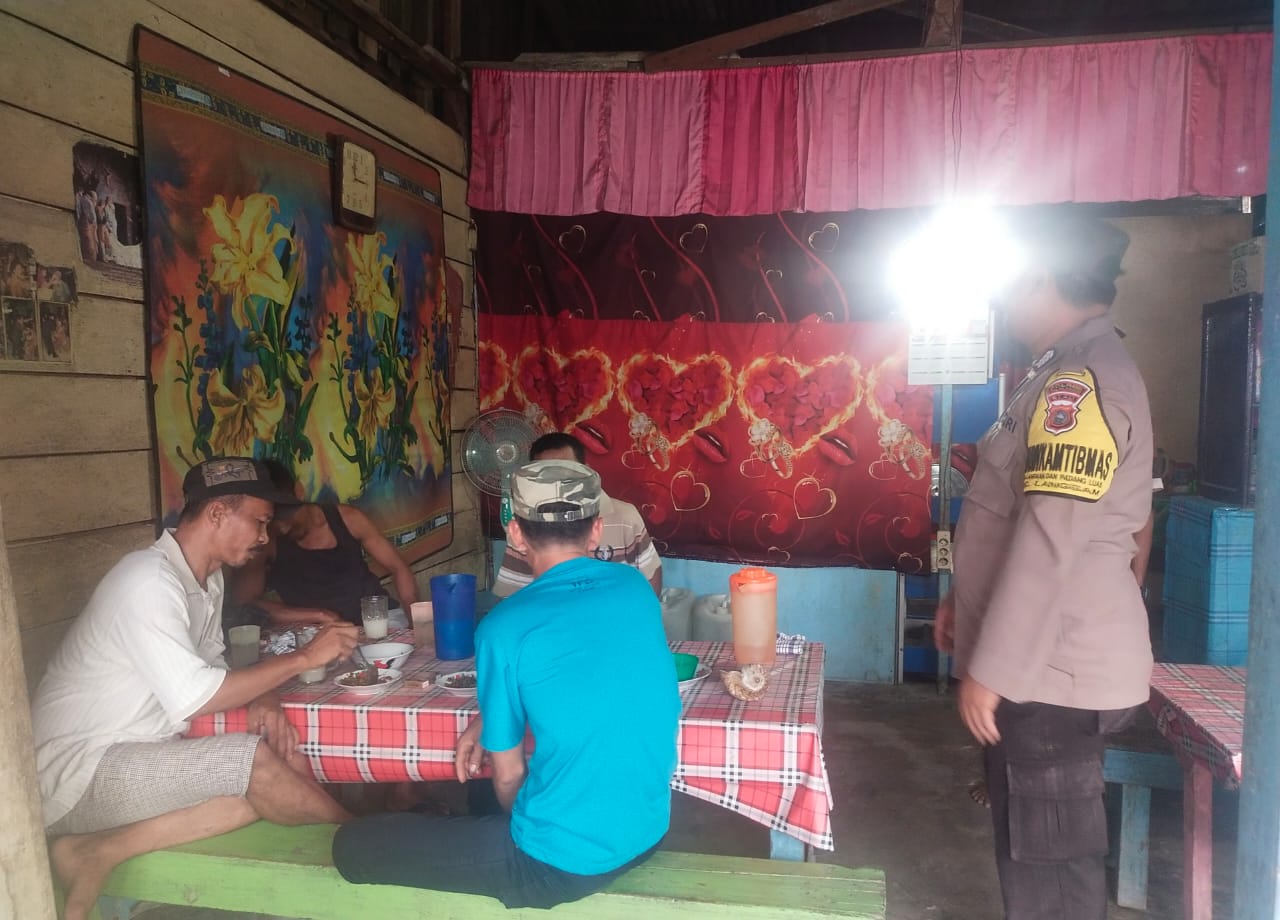Pelalawan|khabarterkini.id-Personel Polsek Langgam, jajaran Polres Pelalawan, kembali menggelar kegiatan rutin patroli antisipasi aksi Curas, Curat dan Curanmor (C3). Kegiatan tersebut juga menyampaikan sosialisasi protokol kesehatan (Prokes), Rabu (15/6/2022). Kali ini, sasaran warung milik warga dan Perbankan yang beroperasi di Desa Segati