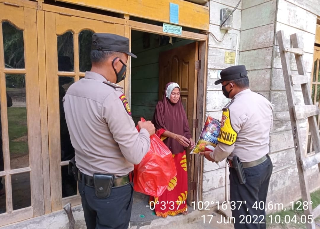 Pelalawan|khabaretrkini.id-Sebagai bentuk kepedulian antar sesama khususnya bagi mereka kalangan kurang mampu, dalam rangka menyambut Hari Ulang Tahun (HUT) Ke-76 Bhayangkara yang jatuh pada tanggal 1 Juli 2022 nanti, Polsek Kerumutan melaksanakan kegiatan jumat berkah dengan memberikan bantuan sembako kepada warga yang kurang mampu, Jumat (17/06/2022).