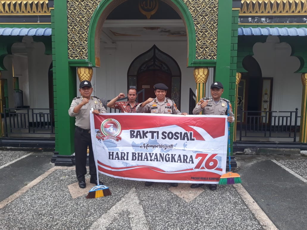 Pelalawan|khabarterkini.id-Sejumlah personil Polsek Kuala Kampar Polres Pelalawan terus melaksanakan kegiatan bakti sosial di tempat-tempat ibadah yang berada di wilayah hukumnya.