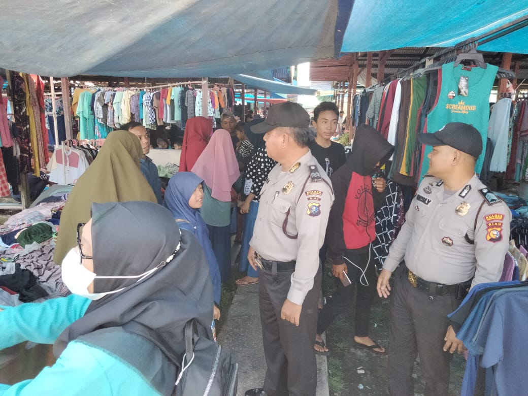 Pelalawan|khabarterkini.id-Dalam upaya untuk lebih mendekatkan diri dengan masyarakat serta menjaga situasi kamtibmas agar tetap terjaga serta memantau pelaksanaan protokol kesehatan terutama pemakaian masker di tempat umum oleh pengunjung pasar.