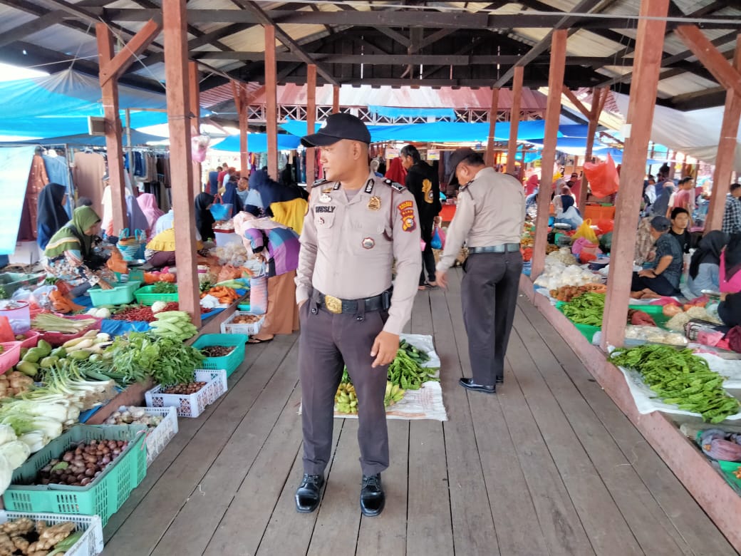 Pelalawan|khabarterkini.id-Dalam upaya untuk lebih mendekatkan diri dengan masyarakat serta menjaga situasi kamtibmas agar tetap terjaga serta memantau pelaksanaan protokol kesehatan terutama pemakaian masker di tempat umum oleh pengunjung pasar.