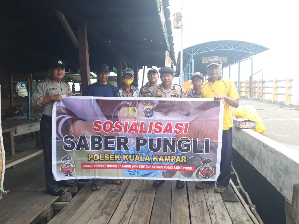 Pelalawan|khabarterkini.id-Polsek Kuala Kampar melakukan sosialisasi Perpres 87 tahun 2016 tentang Satuan Tugas Sapu Bersih Pungutan Liar (Pungli) di Pelabuhan Teluk Dalam yang berada di Kecamatan Kuala Kampar, kabupaten Pelalawan, Sabtu (25/6/2022).