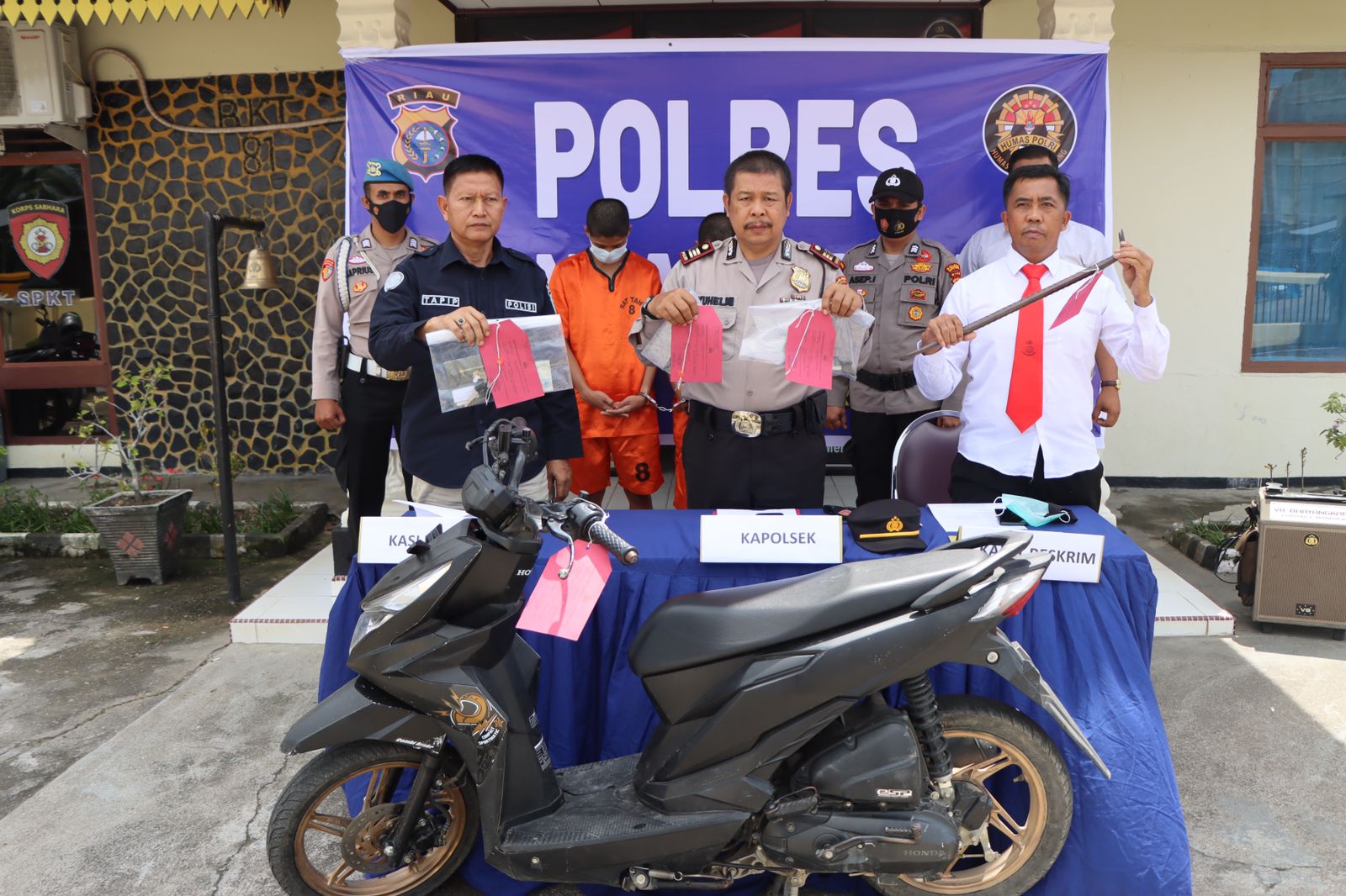 Lebih Lanjut Kapolsek, AKP H.Yuhelmi, menjelaskan, adapun barang bukti yang disita berupa 1 Unit Sepeda Motor Honda Breat Street warna Putih BM 5241 XU yang sydah dirubah menjadi hitam oleh pelaku.