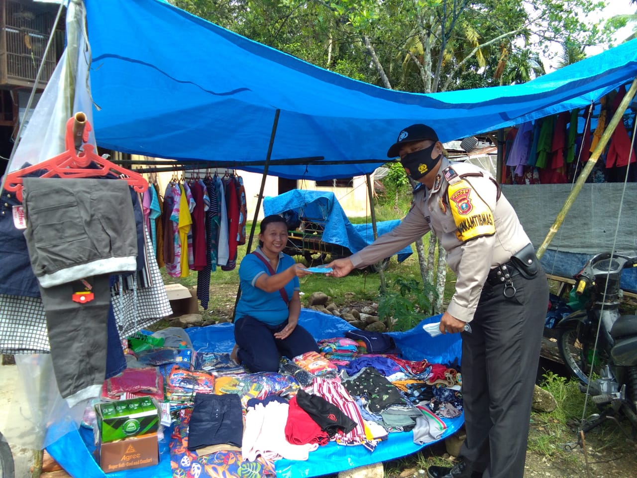Bhabinkamtibmas Polsek Bawolato Polres Nias Brigadir T. Sembiring, melakukan kegiatan menyambangi Pekan di Desa Si’ofabanua Kec. Bawolato Kab. Nias dan membagikan Masker Gratis kepada Warga Masyarakat, Selasa (07/06/2022).