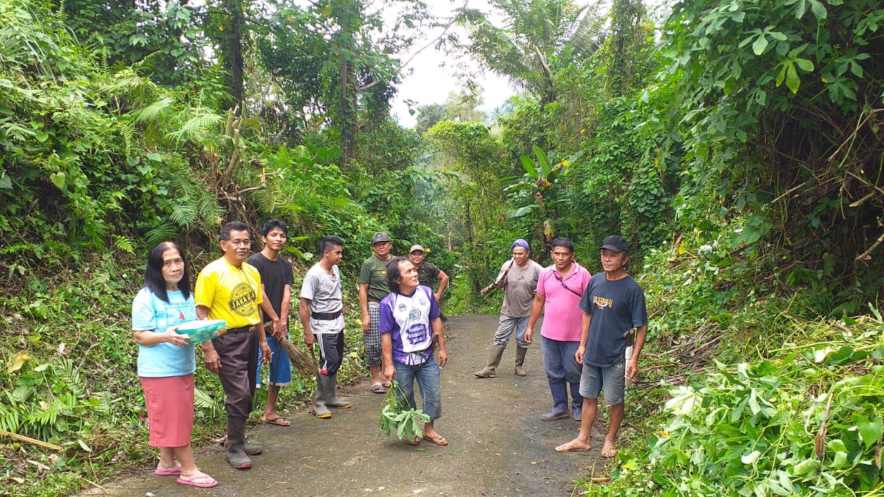 Tanggari Minahasa utara | Khabarterkini.id-Bakal calon Hukum Tua ( Kades ) Desa Tanggari Johan Samel Kalempouw bersama warga melakukan kegiatan kharya bakti di Jalan yang menuju toka Jumat 15 Juli 2022.