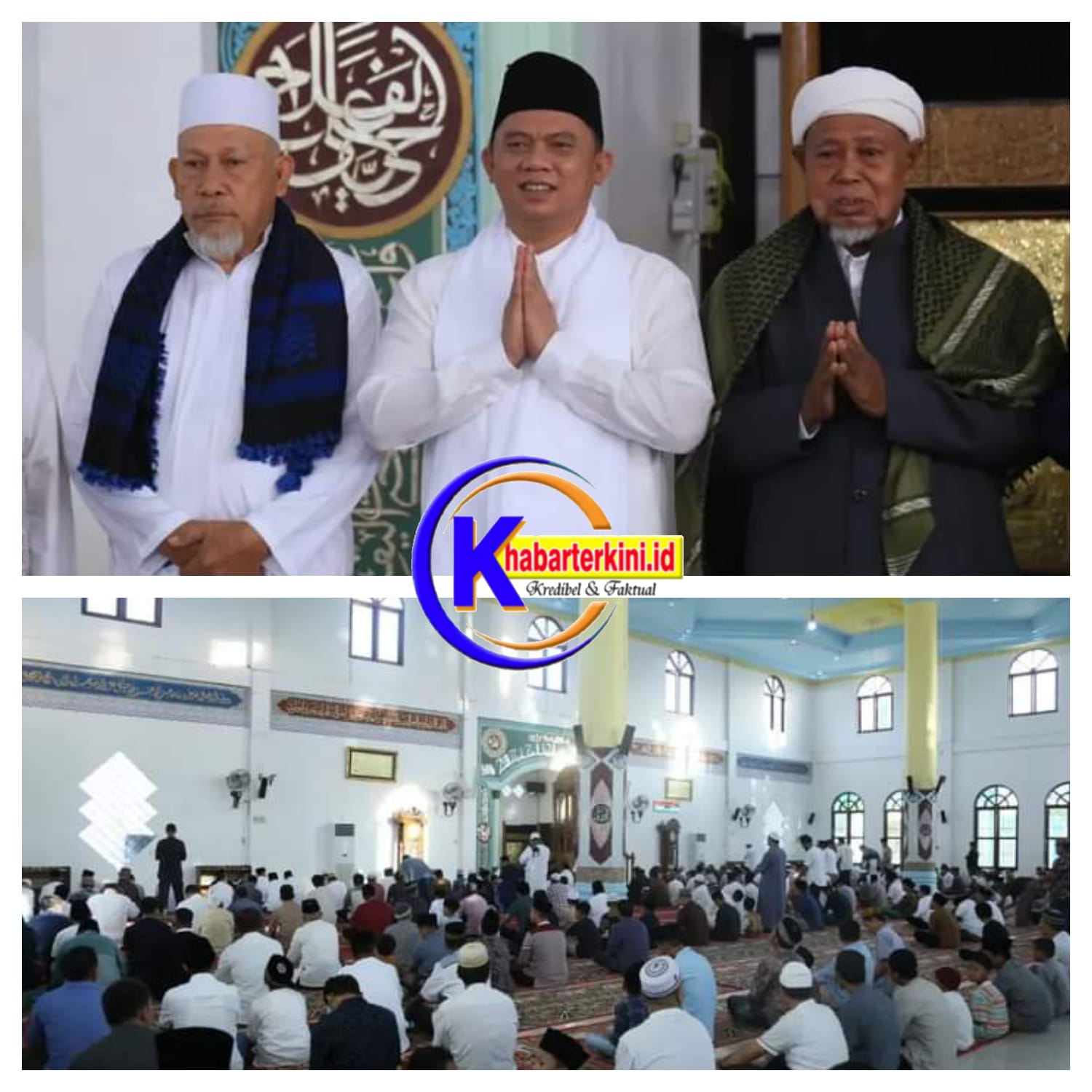 Bupati tiba di Masjid bersama ketua TP.PKK pukul 07.00 WIB disambut sejumlah Kepala Perangkat Daerah dan masyarakat.