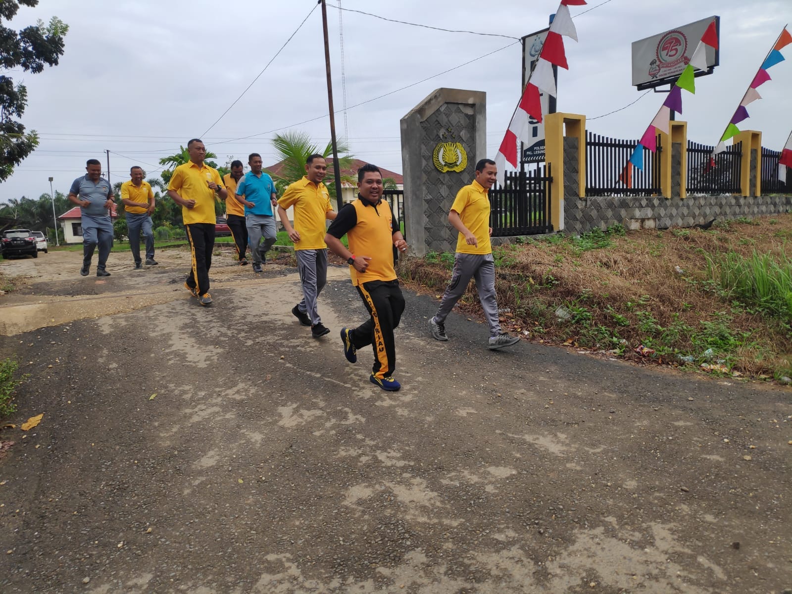 Pelalawan|khabarterkini.id-Kapolsek Pangkalan Lesung AKP Liston Sihombing SH, MH bersama seluruh personil Polsek Pangkalan Lesung melaksanakan olah raga bersama, Sabtu (9/57/2022) pagi.