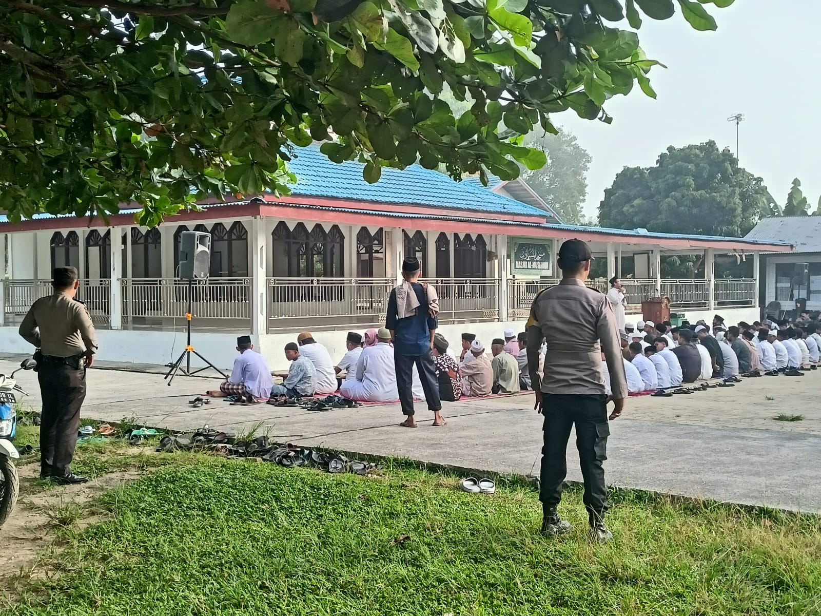 Pelalawan|khabarterkini.id-Pelaksanaan Sholat Idul Adha 1443 H di Pondok Pesantren (Ponpes) Al Muslimun Desa Muda Setia Kecamatan Bandar Sei Kijang, mendapat pengawalan oleh Polsek Bandar Sei Kijang jajaran Polres Pelalawan, Sabtu (9/7/2022).