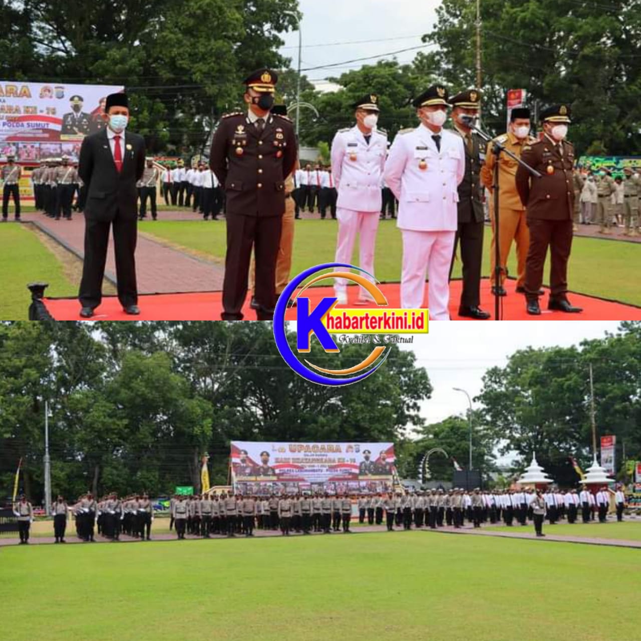 Labuhanbatu I Khabarterkini.id-Polres Labuhanbatu menggelar Upacara Peringatan Hari Bhayangkara Ke -76 secara virtual di Lapangan Mako Polres Labuhanbatu, Kecamatan Rantau Utara, Kabupaten Labuhanbatu, yang dipusatkan di Kampus Akademi Kepolisian (AKPOL) Semarang, Selasa (05/07/2022) pagi.