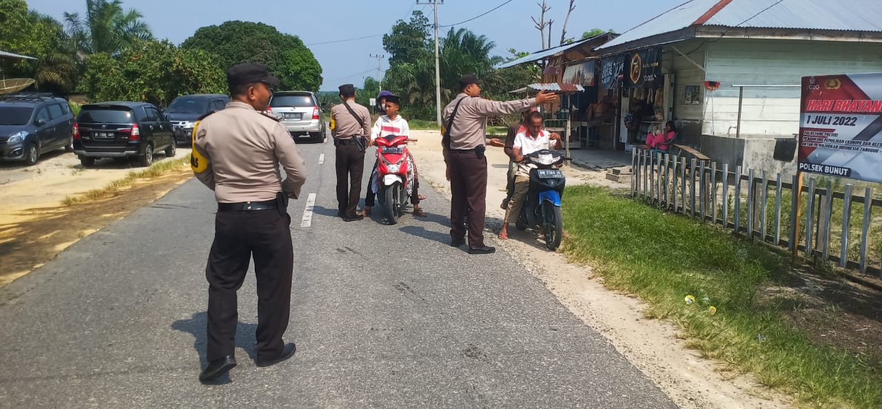 Pelalawan|khabarterkini.id-Razia Vaksinasi digelar Polsek Bunut jajaran Polres Pelalawan, yakni di depan Puskesmas Bandar Petalangan, Jalan Poros Kelurahan Rawang Empat Kecamatan Bandar Petalangan Kabupaten Pelalawan, Sabtu (2/7/2022).