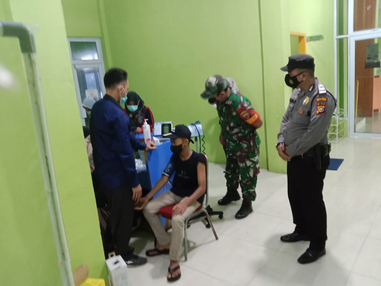 Pelalawan|khabarterkini.id-Polsek Kuala Kampar bersama Puskesmas Kuala Kampar melakukan pengamanan kegiatan vaksinasi di wilayah hukumnya, Sabtu (2/7/2022). Digelar di BLUD Puskesmas Kelurahan Teluk Dalam, Kecamatan Kuala Kampar Kabupaten Pelalawan.