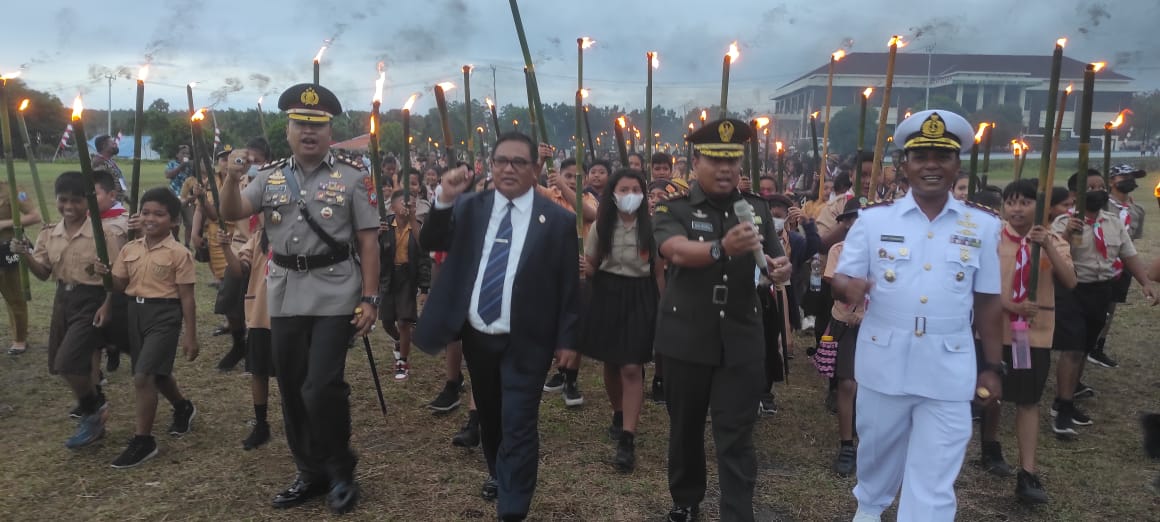 Pawai obor ini merupakan simbol semangat pejuang Angkatan 45′ yang telah mengorbankan jiwa dan raganya untuk merebut kemerdekaan Indonesia. Selanjutnya Dandim 1312/Tld melepas pawai obor di tandai dengan penyalaan api obor secara simbolis kepada peserta pawai. ” Ujarnya