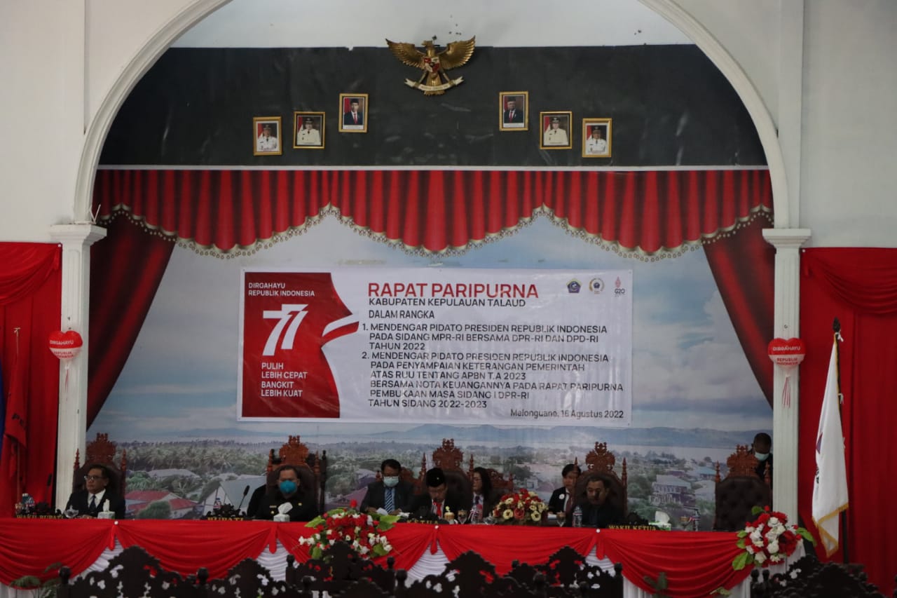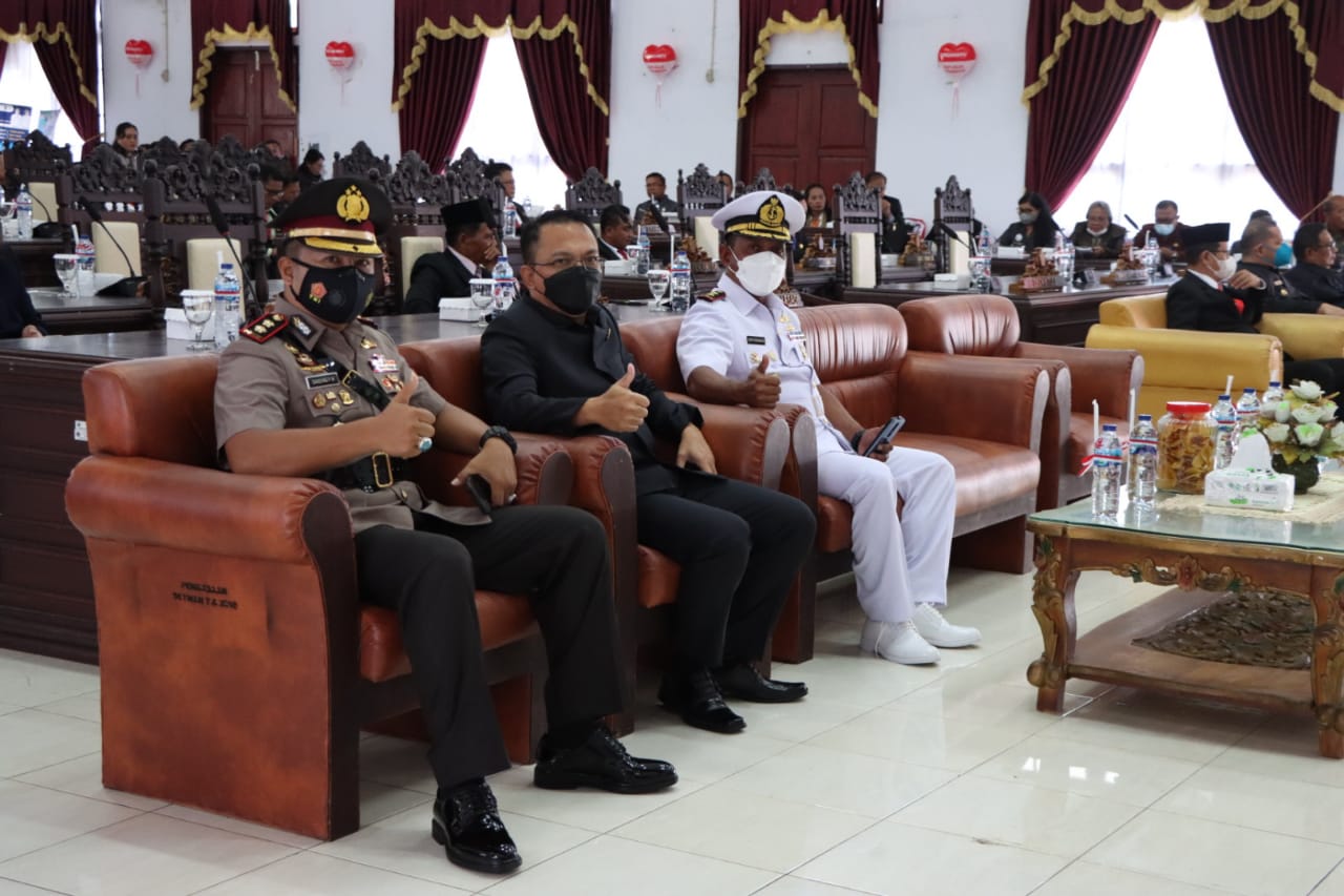Talaud || Khabarterkini.co-Kapolres Kepulauan Talaud AKBP ?Dandung Putut Wibowo, SIK, SH, MH bersama jajaran Forkopimda Kabupaten Kepulauan Talaud menghadiri Rapat Paripurna DPRD Kabupaten Kepulauan Talaud, dalam rangka mendengarkan pidato Kenegaraan Presiden Republik Indonesia, Ir. Joko Widodo, dalam rangka menperingati HUT ke 77 RI, bertempat di kantor DPRD Kabupaten Kepulauan Talaud, Selasa, (16/8/2022).